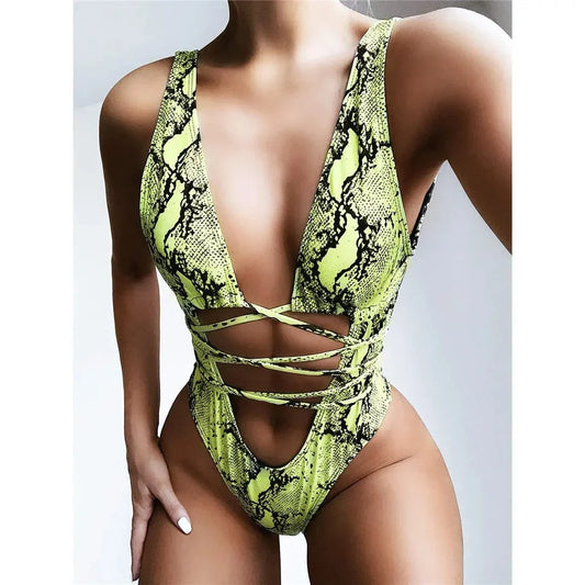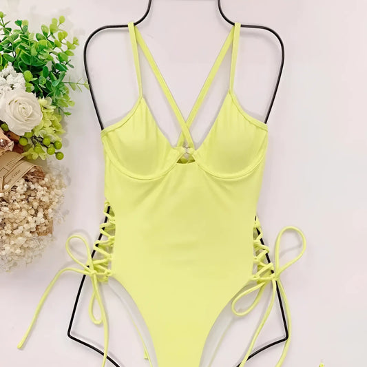 Jednoczęściowy strój kąpielowy z unikalnymi sznurowaniami na biodrach
