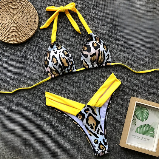 Dwuczęściowy strój kąpielowy z wiązaniem w pasie