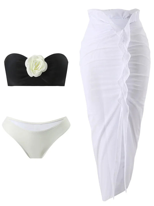 Dwuczęściowy strój kąpielowy z biustonoszem bez ramiączek