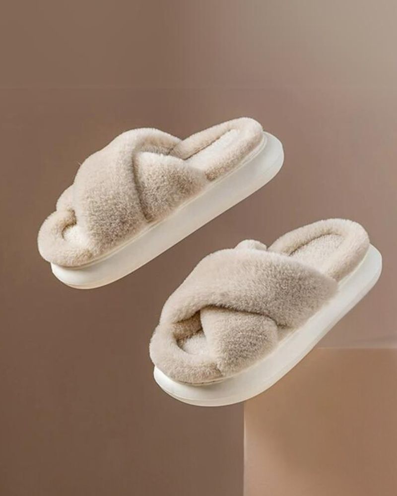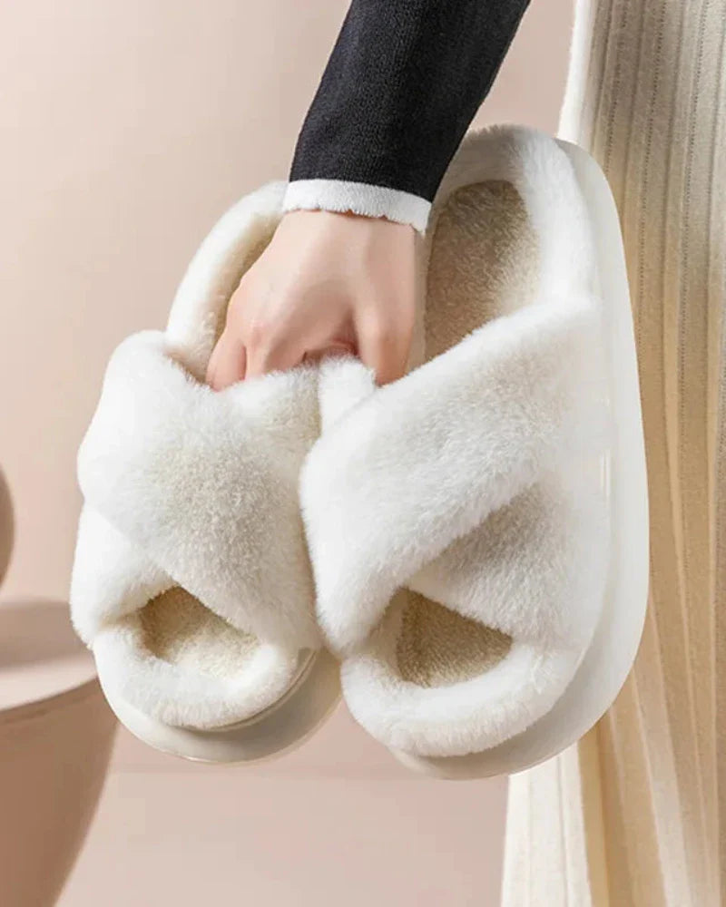 - Miękkie i puszyste klapki z krzyżowym paskiem.