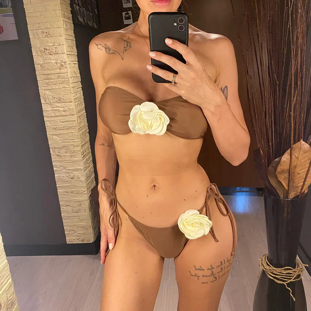 Dwuczęściowy strój kąpielowy bandeau bez ramiączek