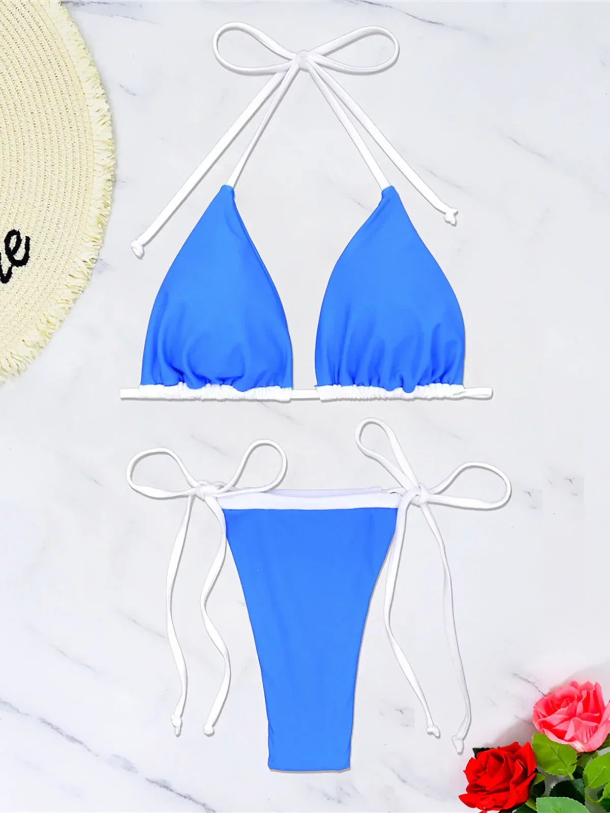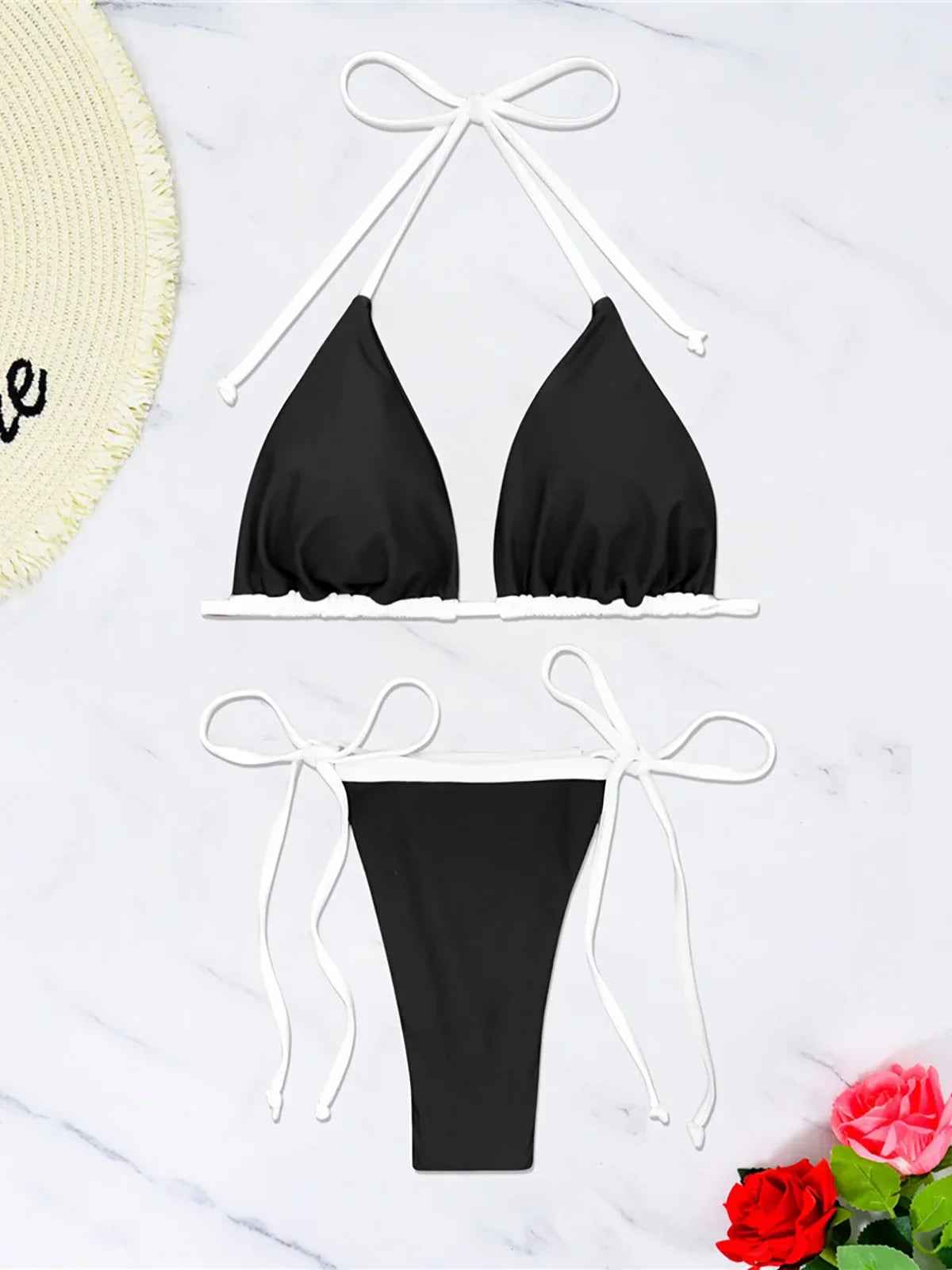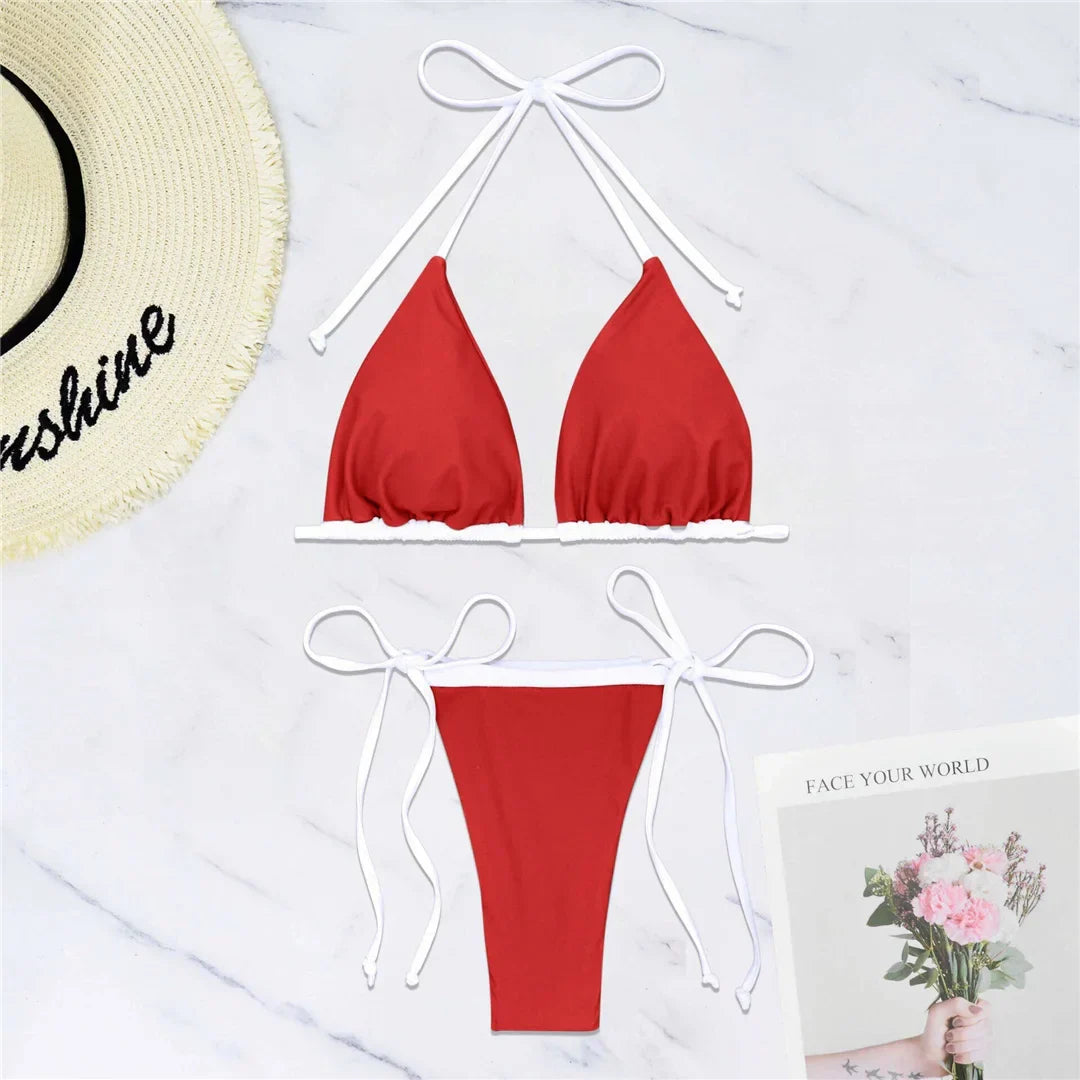 Dwuczęściowy strój kąpielowy z regulowanymi wiązaniami