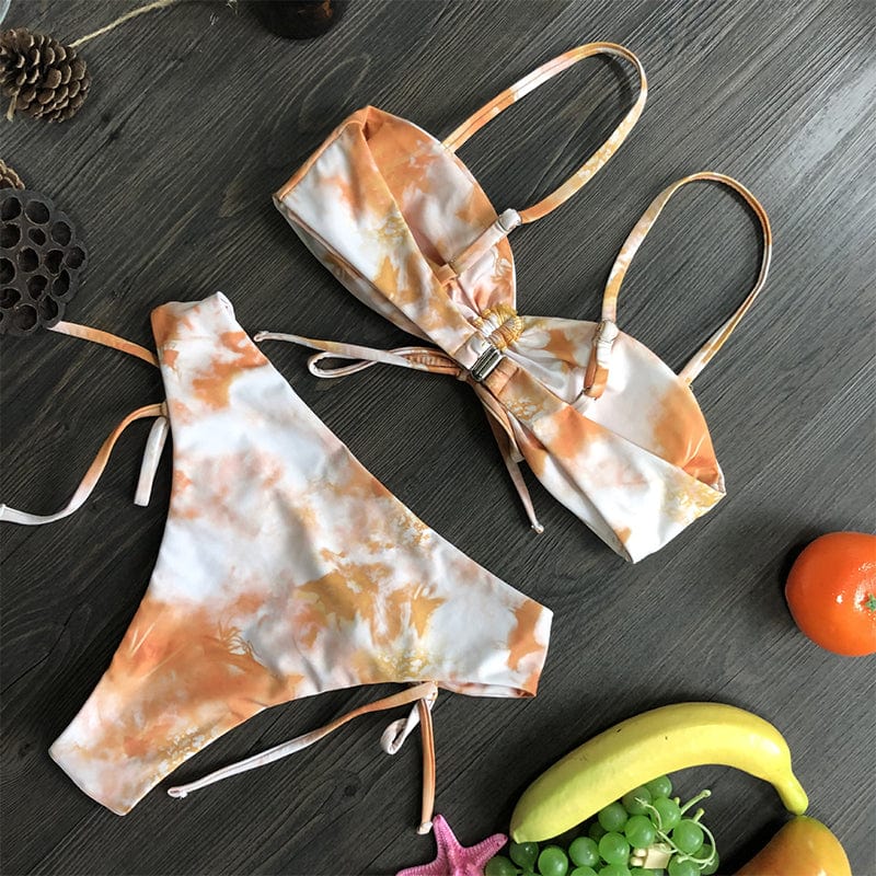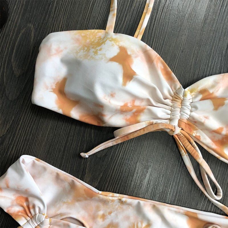 Regulowane ramiączka oraz zapięcie z tyłu zapewniają idealne dopasowanie, a elastyczny materiał sprawia, że strój doskonale układa się na ciele. Ściągacze dodają charakteru, a wzór tie dye sprawia, że wyróżnisz się z tłumu.