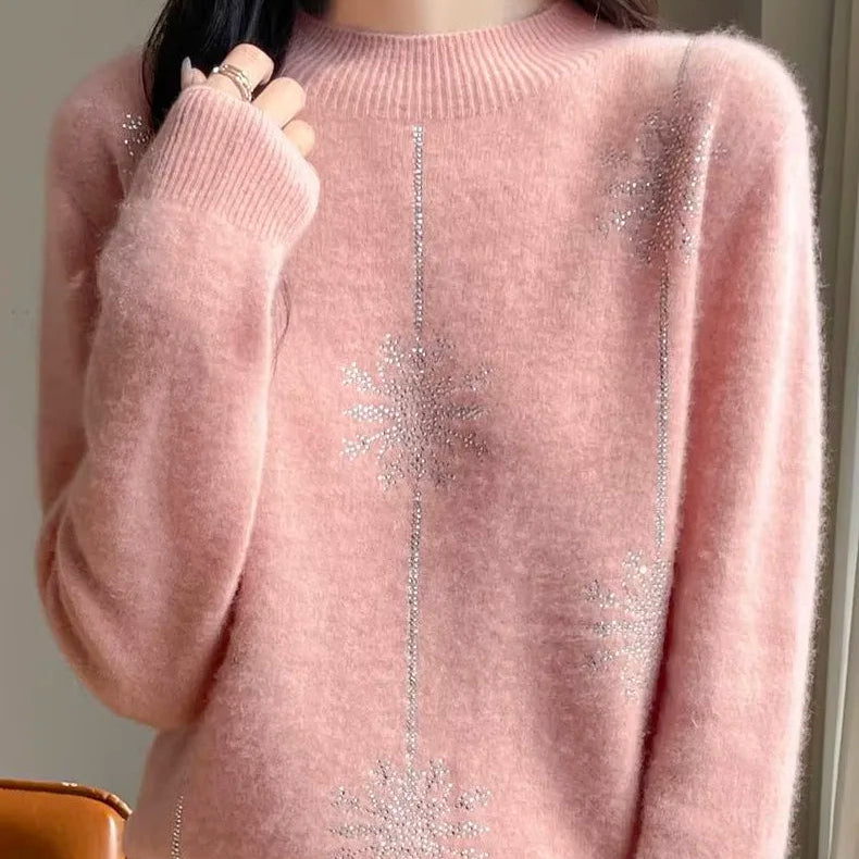 Wprowadź do swojej zimowej garderoby odrobinę świątecznej magii dzięki wyjątkowo miękkiemu sweterkowi ozdobionemu połyskującymi śnieżynkami z cyrkonii. Wykonany z przyjemnej w dotyku dzianiny, zapewnia komfort noszenia przez cały dzień – idealny zarówno na rodzinne spotkania, jak i świąteczne sesje zdjęciowe.