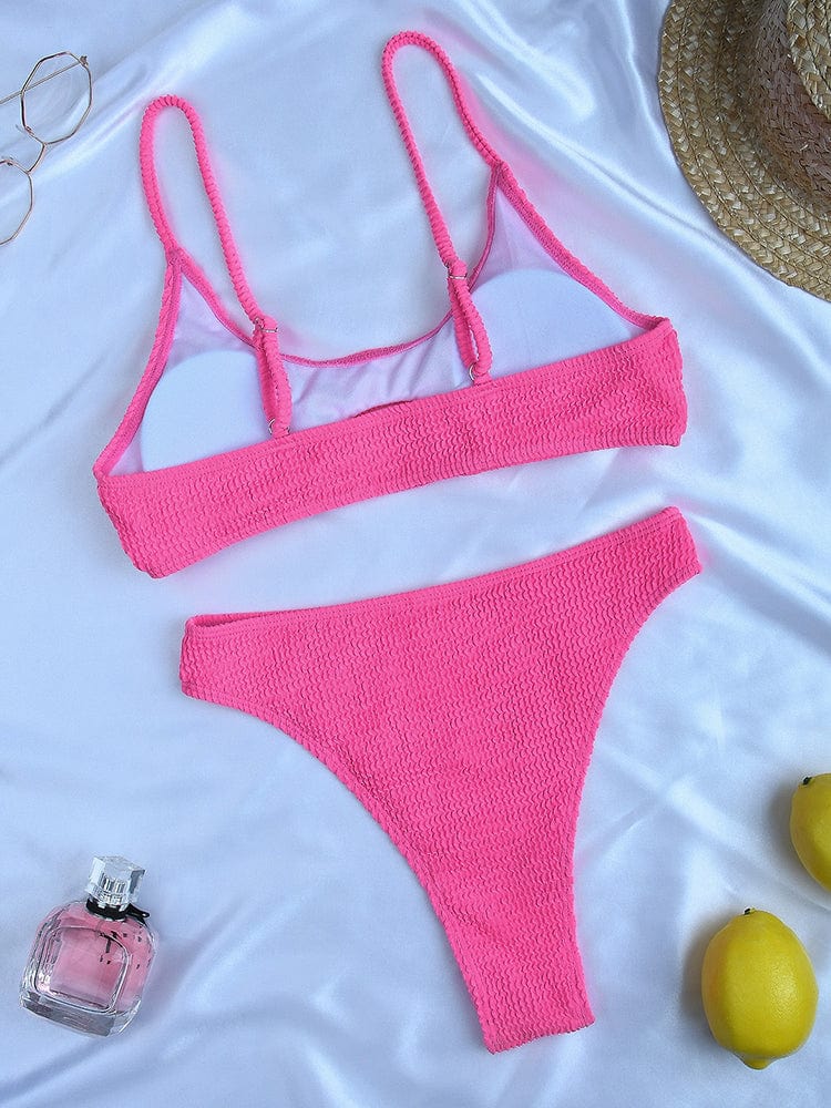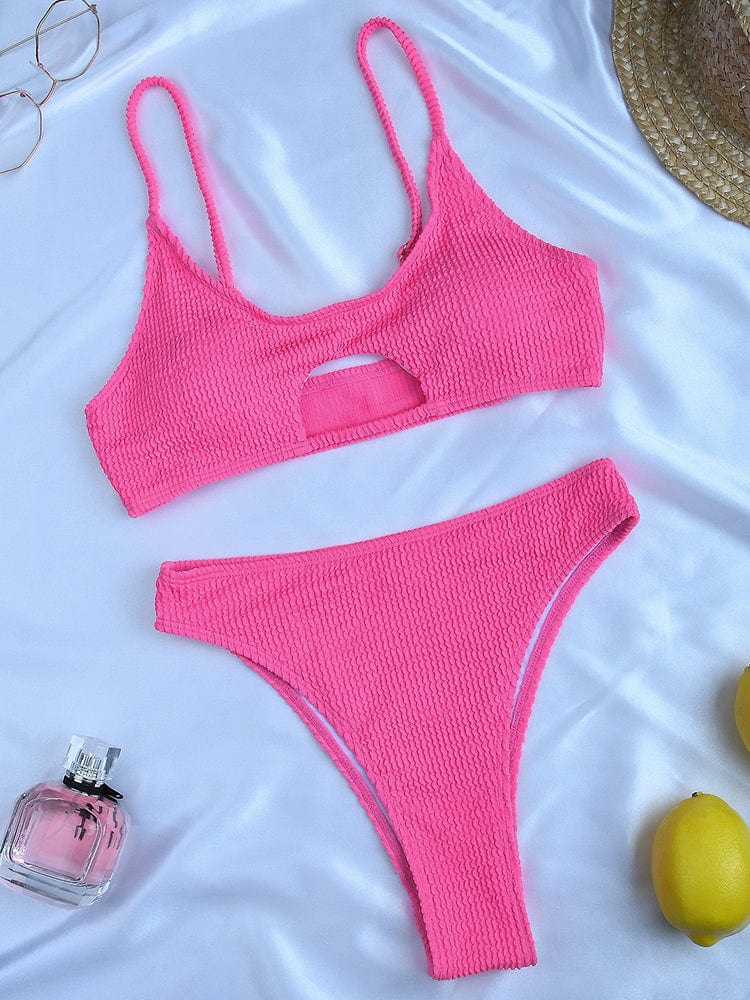 Odkryj swój styl na plaży dzięki temu modnemu strojowi kąpielowemu, który łączy funkcjonalność z atrakcyjnym wyglądem. Jego dwuczęściowa konstrukcja oraz prążkowany materiał sprawiają, że poczujesz się pewnie i komfortowo, niezależnie od okazji.